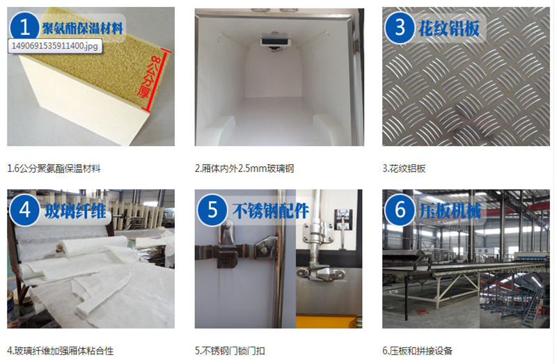 七 廂體配置:我公司面包式冷藏車工藝采用專用模具壓制成型,保溫性能達(dá)到國家A級(jí)標(biāo)準(zhǔn),保溫材料為無縫隙填充聚氨酯發(fā)泡,廂體內(nèi)外采用高強(qiáng)度玻璃鋼板材質(zhì),樹脂膠無縫連接,后配全密封雙開門,不銹鋼門框包邊,不銹鋼合頁和鎖件,廂體內(nèi)部加裝LED夜間照明燈。