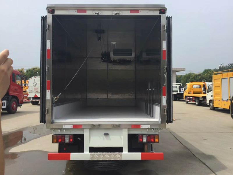 九 選裝配置:可選裝廂體側門(單側門或雙開門),可選裝鋁合金導風槽(導風槽有助于冷氣循環,提升制冷效果),可選裝廂體頂部加固肉勾滑道(直滑道 或 對接互通式拐彎滑道)。可選裝廂體內部采用全面不銹鋼材質(海鮮運輸必須加裝,海水有腐蝕性),可選裝280V-380V外接電源(停車熄火后可插電冷機繼續制冷工作),可選裝溫濕度監控記錄儀(帶打印功能)。
