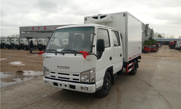 五十鈴雙排冷藏車底盤配置: 慶鈴雙排3.15米冷藏車,國五排放標準,柴油,雙排駕駛室,藍牌,整車型號:CLW5043XLCQ5,底盤型號:QL1040A6HWY,準乘人數2+3人,五十鈴4KH1CN5LS發動機,功率72kw,98馬力,5檔變速箱,方向助力,駕駛室空調,帶ABS,油剎,駕駛室無翻轉,6.50R16鋼絲胎,3360軸距,總質量4495kg,整備質量2660kg,額定載質量1510kg,箱體內尺寸:3150×1750×1750(mm) 廂體配置: 廂體采用聚酯濕法制板工藝和玻璃纖維加強全木廂體框架結構,全封閉聚氨酯板塊粘接法;保溫性能達到國家A級標準。 廂板材質:內外壁板選用國內優質的2.5mm納米玻璃鋼(不吸光、隔熱性好、硬度強、抗氧化);中間保溫材料為無空隙填充進口聚氨酯發泡;廂體厚度80mm,門厚度80mm;廂體底部為鋁合金花紋板或選平面納米玻璃鋼; 配件:廂體周邊鋁合金包邊,不銹鋼包角,不銹鋼門鎖,防碰膠皮4塊,不銹鋼門框, 不銹鋼合頁,箱內節能照明燈; 廂體厚度可選100mm、120mm,內外壁板可選裝玻璃鋼、彩鋼板、不銹鋼、鋁合金。