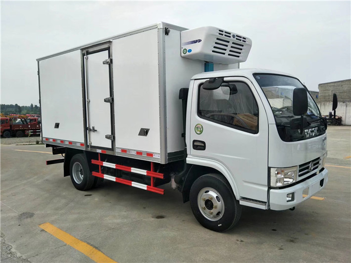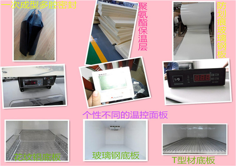 國五東風多利卡D6冷藏車廂體采用內外玻璃鋼,中間夾層保溫材料采用聚氨酯切片真空負壓一次復合成型;厚度8cm,