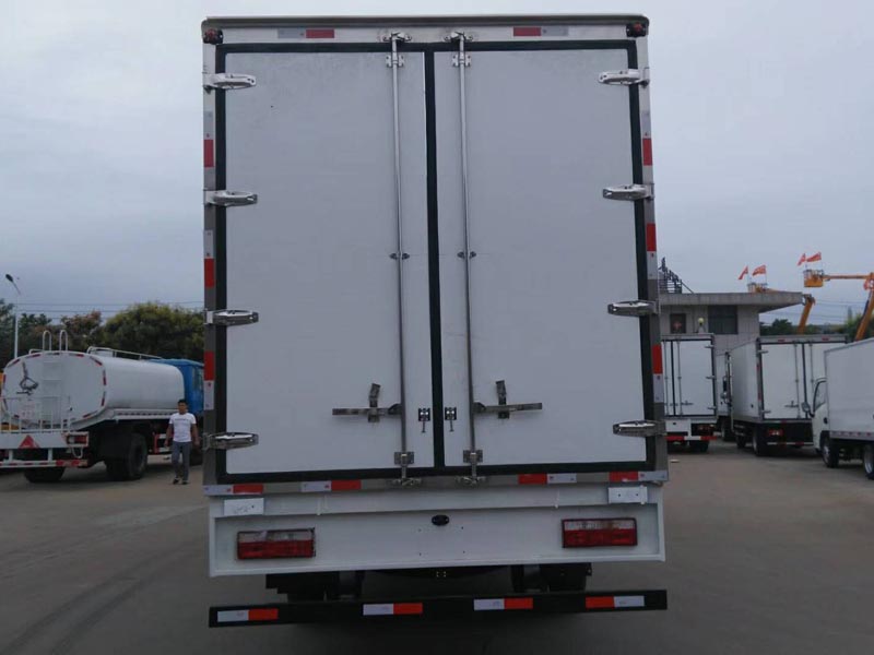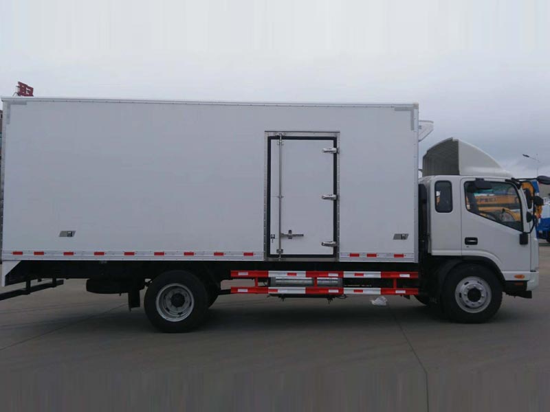 九 選裝配置:可選裝廂體側門(單側門或雙開門),可選裝鋁合金導風槽(導風槽有助于冷氣循環,提升制冷效果),可選裝廂體頂部加固肉勾滑道(直滑道 或 對接互通式拐彎滑道)。可選裝廂體內部采用全面不銹鋼材質(海鮮運輸必須加裝,海水有腐蝕性),可選裝280V-380V外接電源(停車熄火后可插電冷機繼續制冷工作),可選裝溫濕度監控記錄儀(帶打印功能)。