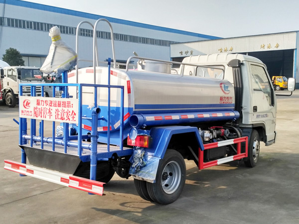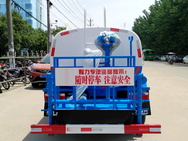 上裝配置:罐體采用4毫米厚武鋼產容積板焊接而成,內設防浪板,大功率灑水泵,可自吸水,加壓排水,前沖15米寬,后灑壓塵,側噴花灑噴頭,尾高綠化高位水炮,射程28米,可調節水柱、大中雨、毛毛雨等,可做臨時消防滅火用。