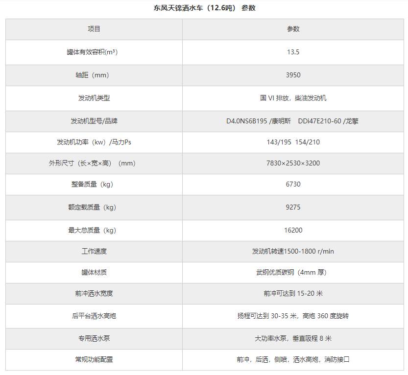 東風(fēng)天錦灑水車(chē)(12.6方)
