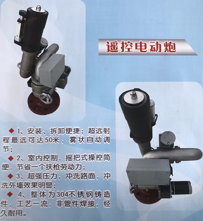 全自動遙控灑水槍是由我公司獨家研發的高端灑水槍,在灑水車頭加裝平臺進行安裝;由水槍部分和控制器組成,安裝快捷,操作簡便;駕駛室內可控制灑水槍噴水狀態,射程、旋轉角度、水柱大小均可調節。